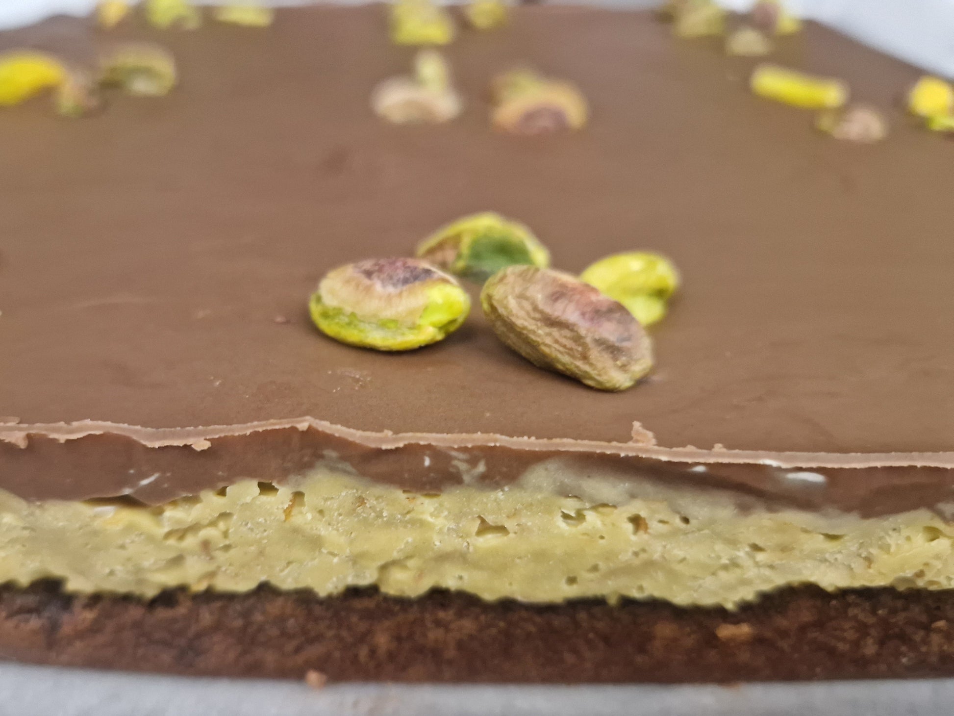 Rich, fudgy brownies with a Dubai twist. 3 layers of brownie, kaydif pastry pistachio filling and topped with a luxurious chocolate spread and pistachios.